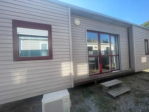 En toda la superficie de 9,40 m, disfrutarรก de un salรณn con banco y espacio de almacenamiento, una cocina completa con frigorรญfico americano, aseos separados, un cuarto de baรฑo con acceso directo desde el dormitorio principal y un total de 3 dormitorios para 6 personas.